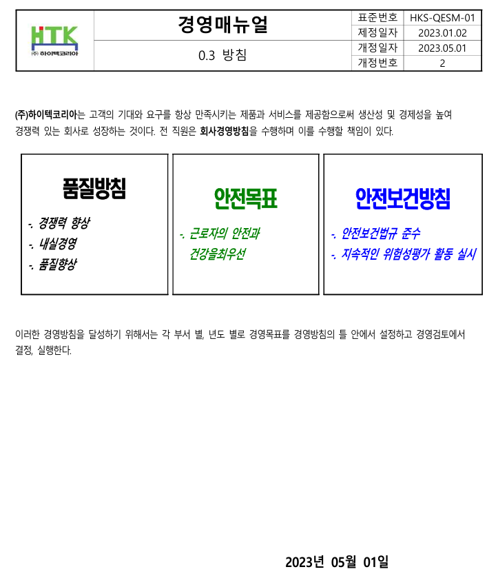 (주)하이텍코리아 회사경영방침(경영매뉴얼)