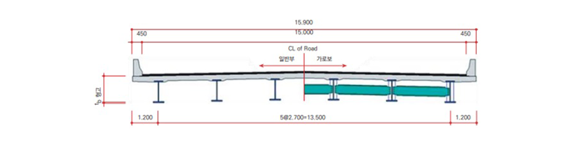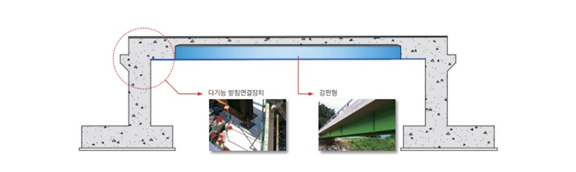 상부구조로 강판형을 적용하여 경제적이면서도 급속시공 및 공기단축이 가능