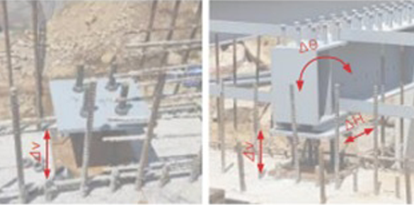 시공중 강거더의 설치높이 조절 및 변위수용과 전도방지가